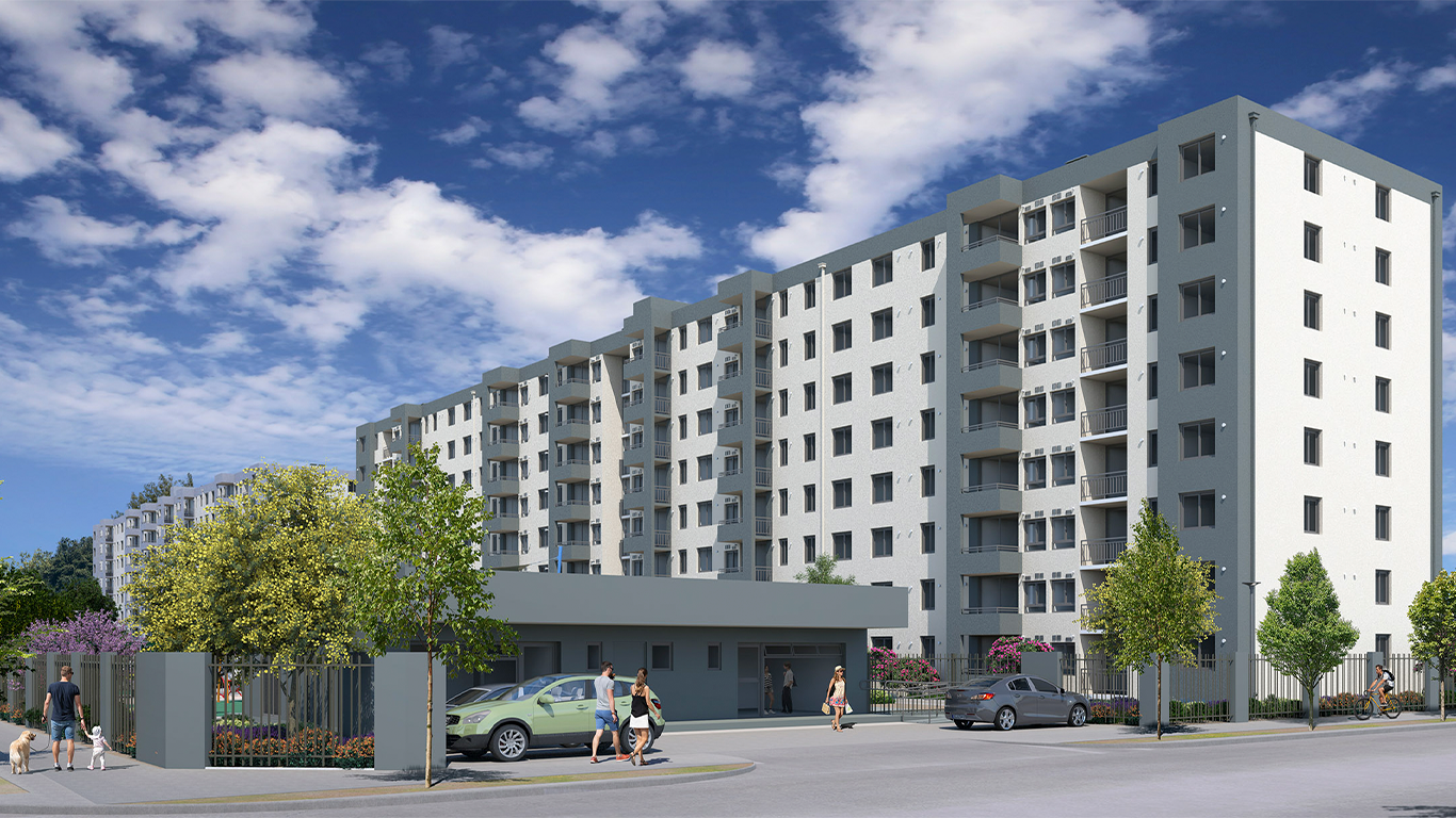 Cálculo en base a crédito hipotecario a 30 años, con tasa del 4,45%, por el mínimo, entre el 80% de la vivienda y su valor tras descuentos: Ahorro Mínimo 100 UF, Subsidio Base según fórmula Serviu, Bono de Integración 200 UF y Bono de Captación 100 UF. No incluye seguros de desgravamen, incendio ni sismos.
